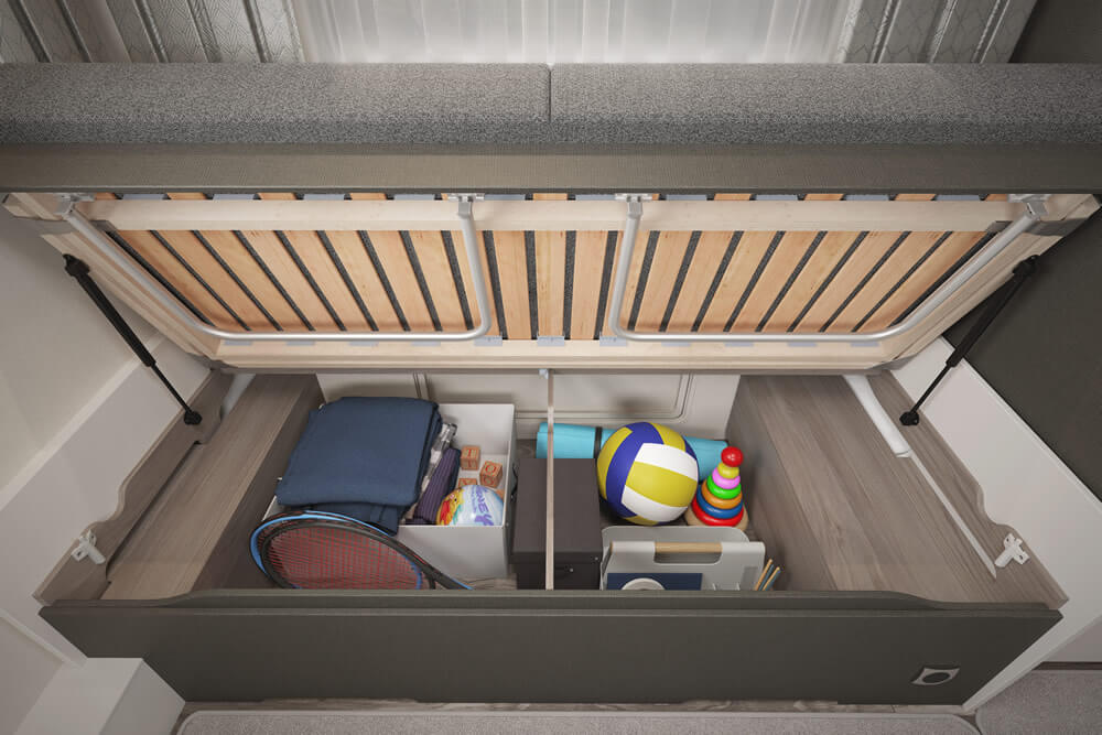 The award-winning Voyager 5 Series boasts real family-appeal. With Aguti travelling seats, you can switch from sociable dining to functional travelling seats with ease. Plus, with an integrated garage included on every model, there’s plenty of storage for everyone on board.